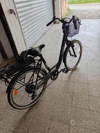 Come da titolo vendo questa citybike mai utilizzata,ancora con plastiche sui componenti. Il modello VM26 Milano è una City-bike molto elegante, leggera ma soprattutto pratica e al contempo robusta. Monta un motore da 250 Watt brushless e la batteria estraibile LISHEN da 13Ah, consentono un’autonomia di 80 Km mantenendo una velocità massima di 25 Km/h.Con il manubrio regolabile in altezza, potrai regolarlo a tuo piacimento per un’ulteriore comodità.Cambio SHIMANO TY21 a 7 velocità diverse, per avere la possibilità di cambiare la pedalata e godersi a pieno il percorso senza affaticarsi.I freni V-Brake consentono un minor sforzo delle dita sulle leve al manubrio per una potenza superiore sui pattini di attrito.I due parafanghi consentono di ripararsi dai frammenti di fanghiglia o da sedimenti di ghiaia delle ruote