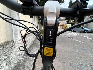 Unipro. Telaio alluminio verniciato fosforescente Cerchi 28 lenticolari verniciati idem Telaio 42 Freni bacchetta alta efficienza Forcella anteriore a rigidità regolabile 5 posizioni Manubrio regolazione rapida Sella anatomica con ammortizzatore nel canotto Antifurto posteriore scatto rapido Catena blindata 120 cm Cambio 6 velocità più ridotta per pendenza ripida (box) Computer di bordo Batteria da sostituire