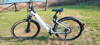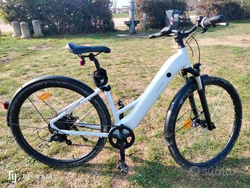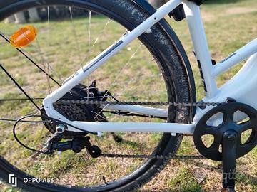 City e-bike trekking pari al nuovo solo un paio di uscite ho scelto la giornata x le foto dopo che ha piovuto ma è solo un po' sporca ma come da foto è praticamente nuova. Nuova costa 999 euro