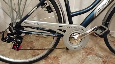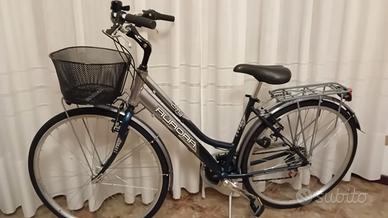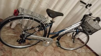 Vendo city bike donna piantone regolabile, ruote da 28, telaio alluminio, 6 velocita, cestino e campanello. Fari funzionanti.