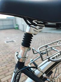 Bicicletta da città Frera da uomo. -Cambio Shimano 21 rapporti - Sellino in gel ammortizzato - Colore nero/argento - Telaio robusto. - Portapacchi posteriore. - Parafanghi. - Luce anteriore e posteriore. -Ruota anteriore smontabile