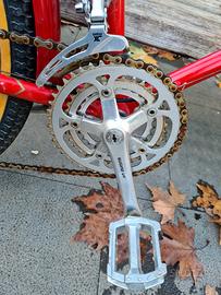 Rara bicicletta da turismo vintage su telaio artigianale in acciaio. Telaio costruito a mano da artigiano italiano su tubi Tange in acciaio rinforzato al cromomolibdeno Cr-Mo. Manubrio da turismo e pipa inox con cambio a levetta sempre inox. Guarnitura Suntour XC ricavate dal pieno. Leveraggi di frenata e deragliatori sempre di alta qualità e marchiati. Cerchi in alluminio Sumo, raggi in acciaio e gommatura generosa per ammortizzare asperità e buche. Cavalletto. Per visionarla zona Villa Celimontana