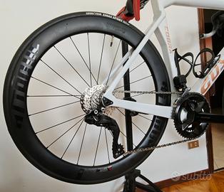 praticamente nuova acquistata 2/10/2025 usata due volte non adatta per me' misura L montata 105 D2 telaio carbonio ruote carbonio manubrio carbonio attacco manubrio carbonio reggi sella carbonio resto da vedere in foto no perditempo non spedisco consegna dopo essere visionata in sede abitativo
