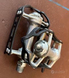 Vendo set completo di componenti da bici da corsa d'epoca, tutto originale. Manubrio 3TTT mod. Grand Prix con attacco integrato 3TTT Italy, nastro Benotto Ribbon bianco tricolore originale montato. Leve freno Campagnolo Super Record con gommini originali marroni presenti ma crepati dal tempo (sostituibili). Pedali Campagnolo Record (Patent Campagnolo) in alluminio con gabbiette in acciaio. Fermapiedi REG Italy mod. Special in acciaio cromato con cinghie REG in cuoio originali. Ideale per restauro bici d'epoca. Non si divide.