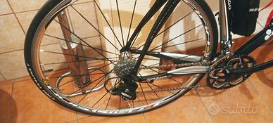 Conservata anno 2001 montata tutta Shimano Tiagra 2x10 (componenti tutti nuovi freni leve freno/cambio guarnitura cambio posteriore gabbia lunga anteriore) telaio perfetto cerchi alluminio nuovi copertoncini nuovi pirelli P7 euro 699
