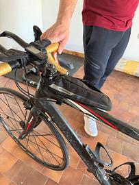 Vendo prestigiosa Colnago CLX con telaio e forcella interamente in carbonio (certificazione UNI EN 14781). Una bicicletta con un vero pedigree sportivo, utilizzata con successo per competizioni di Triathlon e Ironman. La geometria endurance di questo modello la rende perfetta per chi cerca prestazioni senza sacrificare il comfort sulle lunghissime distanze. Configurazione Tecnica: Gruppo: Campagnolo Xenon 10 velocità (preciso e affidabile). Ruote: Set misto performante con Mavic Ksyrium SL (anteriore) e Fulcrum Racing (posteriore), combinazione ideale per leggerezza in salita e stabilità al vento. Pneumatici: Vittoria Rubino Pro (700x23c). Accessori Specifici per Triathlon inclusi: Cockpit: Prolunghe aerodinamiche (aerobars) con poggiagomiti imbottiti. Idratazione: Supporto posteriore doppia borraccia montato sottosella (indispensabile per lunghi trail). Storage: Borsa da telaio aerodinamica Roswheel Race (per gel/smartphone). Strumentazione: Ciclocomputer digitale già installato. Stato e Manutenzione: La bici è attualmente configurata per un'altezza di 175 cm. È rimasta ferma per un periodo, pertanto segnalo per correttezza: Camere d'aria da sostituire preventivamente (costo irrisorio). Un portaborraccia sul telaio da sostituire. Bonus incluso: Regalo secondo manubrio Deda Piega con attacco Deda Logo (qualche segno estetico da rimessaggio ma perfettamente utilizzabile). Un'occasione per chi cerca un marchio leggendario con un allestimento completo per il triathlon ad un prezzo accessibile. solo ritiro a mano. zona bergamo e provincia