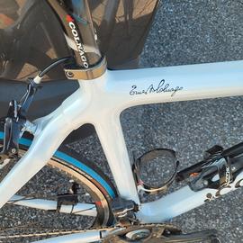 Colnago CX-1 anno 2009. Riverniciata nel 2019. Qualche graffio nella vernice. Sostituito interamente gruppo con Campagnolo Record EPS e ruote Fulcrum zero. Appena revisionata con sostituzione cuscinetti Guarnitura e ruota posteriore. Rapportatura 50-34, 12-32. Misura tubo orizzontale 51,5, pipa manubrio 11. Adatta a persone di altezza 160-173.