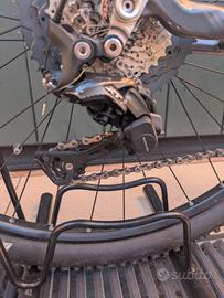 Telaio in alluminio idroformato con batteria integrata, forcella RockShox Judy Gold RL con escursione da 120 mm, cambio Shimano XT a 11 velocità con cassetta 11-46, freni Shimano XT BR-M8000 e gomme Schwalbe Nobby Nic 29″