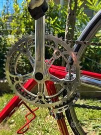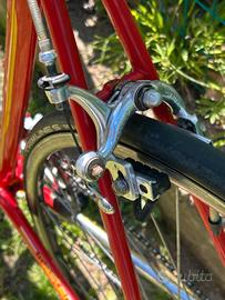 Vendo splendidaColnago Masteranni '80 nell'iconica colorazione rossa (Saronni style). La bicicletta è un pezzo da collezione "conservato", completa di tutti i suoi componenti originali dell'epoca. È in un buono stato conservativo, non è mai stata restaurata, ma è stato sostituito solo il nastro al manubrio. Mostra qualche piccolissima imperfezione data dal tempo. Caratteristiche Principali: Telaio: Colnago Master con tubazioni stellari (Gilco) in acciaio, congiunzioni e forcella cromate. Gruppo: Campagnolo C-Record / Record completo (cambio, deragliatore, guarnitura con logo inciso, freni Record/Cobalto). Componentistica: Attacco manubrio e piega 3T (Tecno Tubo Torino), pedali a gabbia originali con fermapiedi e cinghietti d'epoca. Stato: La bici è strutturalmente perfetta, senza botte o ruggine passante. Un'occasione rara per acquistare una delle bici più iconiche della storia del ciclismo in configurazione top di gamma.