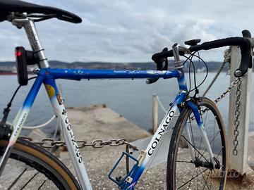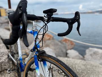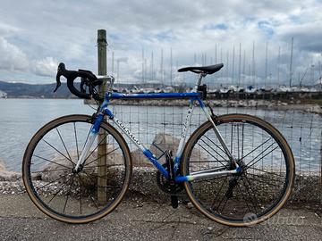 Per passaggio a gravel vendo fantastica Colnago Master Extra Light, una delle biciclette da corsa in acciaio più iconiche della storia del ciclismo Made in Italy. Il telaio, dalla geometria classica, è realizzato a mano in Italia in acciaio ad alta lega Columbus, con il caratteristico profilo a stella Gilco che garantisce un’eccellente rigidità e una sensazione di guida di altissimo livello. La verniciatura è anch’essa eseguita a mano, nella tradizionale finitura Art Decor. Si tratta del modello originale, prodotto tra il 2000 e il 2004. Questo telaio senza tempo è tuttora in produzione, ma realizzato oggi in acciaio Dedacciai anziché Columbus. Taglia 55 La bicicletta è assemblata in configurazione neo-retro, con componenti moderni per comfort e prestazioni superiori: gruppo Campagnolo Centaur a 11 velocità ruote Campagnolo Shamal Ultra sella Astute con binari in titanio pneumatici Continental GP5000 da 28 mm (quasi nuovi, meno di 300 km percorsi) La bicicletta è in condizioni eccellenti e pronta all’uso. Ideale sia per collezionisti sia per chi cerca un’esperienza di guida di alto livello, con un carattere unico. Trattabile. Possibilità di scambio con bici gravel in carbonio. Ritiro a mano a Muggia / Trieste