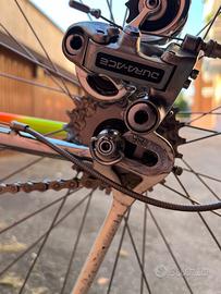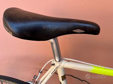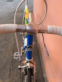 Colnago Nuovo Mexico 1985 Team Panasonic, taglia 58x58, completamente restaurata e originale. Telaio Columbus SL, gruppo completo cambio-freni-sterzo-sella Shimano Dura-Ace, cerchi Ambrosio Super Elite con copertoni Victoria, piega alleggerita Cinelli, sella in cuoio San Marco Rolls. Bicicletta EROICA.