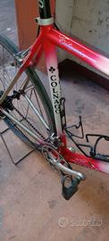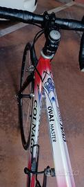 Vendo, per conto di un amico , Colnago Oval master titanio agosto 1999, in buono stato, cm. 54,8 tubo orizzontale misura Colnago. Leve freni e cambio Campagnolo record. Guarnitura e deragliatore chorus. Pinza freni anteriore Chorus, posteriore non di marca perché sostituita. Ruote Campagnolo Proton.