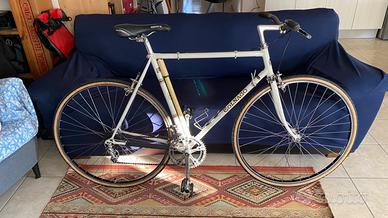 Vendo bici Colnago Super colore bianco vernice originale, primi anni '80, in buono stato revisionata recentemente, telaio Columbus misura 56, manubrio sportivo 3ttt con pipa Cinelli, sella Bassano, cerchi Ambrosio Elite per copertoncino dritti e molto scorrevoli, guarnitura Colnago Ernesto alleggerita, deragliatore Campagnolo nuovo record, cassetta Regina extra 6 velocità, mozzi Campagnolo record, freni Universal mod.77 con pattini da cambiare, pompa Colnago inclusa, preferibile ritiro a mano zona Milano.