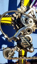 Bellissima bici da corsa vintage colnago sprint, montata tutta campagnolo record carbon titanio 10v,telaio,pipa manubrio e forcella pantografato,borraccia campagnolo,scatola movimento centrale alleggerita, ruote in carbonio a razze ambrosio spinergy per copertoncino,tubo sella carbonio e sella concor supercorsa, nastro manubrio supacaz,Misura 53x51 centro/centro