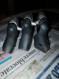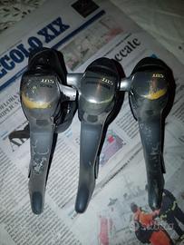 Come da foto, n. 3 comandi freno / cambio Shimano 105 (ST-5500). N. 2 comandi SX 3 rapporti e N. 1 comando DX 9 rapporti. Perfettamente funzionanti, salvo segni di usura. Il comando DX ha la guaina in gomma rotta. Si vendono tutti e tre in blocco al prezzo indicato.