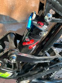 Vendo per cambio progetto. La bici monta ruote 26” nuove (anche le gomme) dt swiss su mozzo zee 135x12 al posteriore e recerse 100x15 all’anteriore. Manubrio rise 30x740 Funn e selle italia x3. Escursione 140-100.