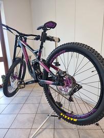 E' stata appena revisionata dopo lungo periodo di fermo: spurgo freni, copertoni Maxxis Minion DHR II nuovi, camere nuove, registro cambio e pulizia pastiglie ceramiche (80% circa).