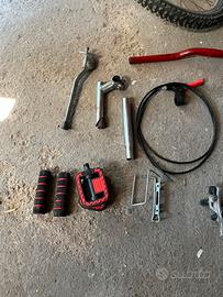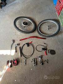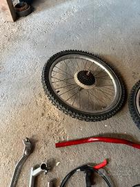 Due ruote da 20 anteriore e posteriore 6 velocità, manubrio rosso , attacco manubrio cromato , manopole rosse e nere , leve e fili dei freni anteriore e posteriore , cavallerro , catena e falza maglia , petali rossi e neri , porta borraccia , tubbo sella