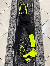 Vendo giacca antivento, completino x bici, guanti e casco in ottime condizioni tutto comprato nuovo e utilizzato una sola volta.lo tolgo x cambio sport taglia m