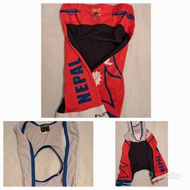 Acquistata in negozio direttamente a Kathmandu bellissima divisa Nazionale nepalese mtb. Non passa inosservata per la sua rarità, difficile da trovare in Europa. Taglia S la maglia ed L il pantalone (io sono 1.82cm per 75kg). Fondello ben imbottito in gel.