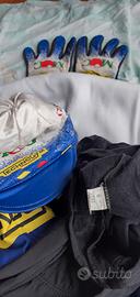 Completo da ciclismo invernale vintage TECHNOGYM - NALINI, usato in buono stato; pantaloncini e giubba tg. 6 con due tasche posteriori, guanti e cappello. Spedizione possibile tramite tuttosubito .