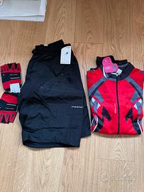 Completo da ciclismo nuovo con etichetta guanti pantaloni imbottiti e maglia taglia L