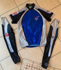 Completo da ciclismo “My Bike” comprende: maglia vento con maniche lunghe applicabili, pantaloncini mezza gamba con bretelle, e guanti abbinati, nuovissimi, in ottime condizioni. TG. L