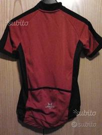 Completo bimbo/a a manica corta rosso e nero della Lakes e pantaloncino corto sempre della Lakes. Il completo non è mai stato usato, perfetto ed adatto ad un bambino od una bambina appassionata di ciclismo. La lunghezza frontale della maglietta è di 51 cm. larghezza 43 cm il completo è elastico e quindi può cedere maggiormente. La maglietta lateralmente dov'è la parte nera, è traforata per una maggiore aerazione. Pantaloncino con vita da 23 cm ma grazie all'elastico si sfrutta maggiormente, è completo di fondello. La taglia indicata è 140. Per altre informazioni non esitate a chiedere.