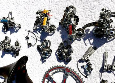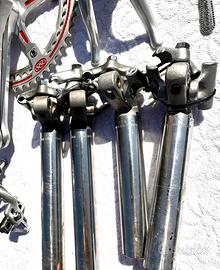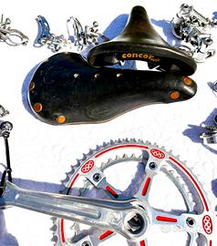 Vendo componenti Campagnolo Nuovo Record Guarnitura 172.5 no patent 95 euro Sella Brooks 70 euro Sella Concord S.Marco Max 45 euro Canotto reggisella 26.8 mm a 45 euro Canotto 27 45 euro Canotto 27.2 45 euro Canotto 27.4 55 euro Serie sterzo 45 euro Manettini 20 euro Deragliatore 3 fori 35 euro Deragliatore piatto no fori 20 euro Leve freno 125 euro Cambio posteriore anno 73- 77 - 80 - 82 a 45 euro Gabbiette Reg Special 20 euro Cinghiette 15 euro Tappi parapolvere 20 euro Pinze freno 90 euro Idonei per bici da corsa d’epoca coma Masi Bianchi De Rosa Galmozzi Colnago Alan Patelli Olmo Paletti Pela Serena crono pista Marastoni delta