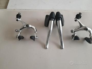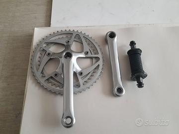 Per cambio allestimento vendo: 1° Guarnitura Ofmega Mundial denti 52/42 lunghezza pedivelle mm 170 € 30,00, 2° Movimento centrale passo italiano 36 x 24 €15,00, 3° Coppia pinze freno Saccon mod. Altex € 23,00, 4° Coppia leve freno Saccon a filo interno € 22,00, 5 Coppia pedali completi di ferma punte e cinghiette € 18,00. Componenti, pari al nuovo, provenienti da una bici da corsa ATALA degli anni novanta utilizzata prevalentemente come bici da esposizione e/o per brevi uscite di prova. Ulteriori chiarimenti e/o foto a richiesta.