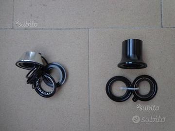 Serie sterzo Tange Seiki da 1 1/8. quella a dx è per forcelle non filettate, quella a sx è per forcelle filettate. Entrambe NUOVE, MAI MONTATE. Si accettano offerte