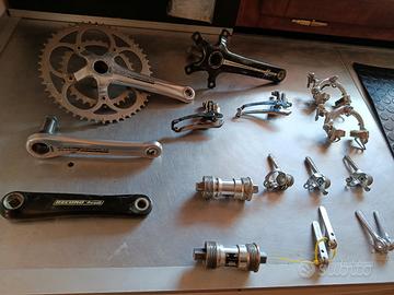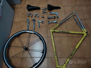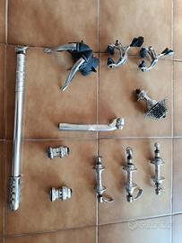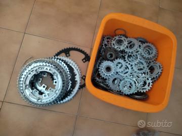 tabellone con pignoni Campagnolo + Shimano 10/11 v nuovi ( centrali più prime posizioni )anche in blocco. telaio acciaio da verniciare misura 56 con forcella euro 30, ruota anteriore Gipiemme euro 20 , serie decalcomanie Columbus euro 8, coppia freni Universal euro 20 , ecc.