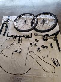 come da foto: forcelle, manubrio, freni, ruote 26 ant. e post. Mavic, gruppo Shimano XT in ottime condizioni. pezzi tutti provenienti da unica mtb in alluminio misura L