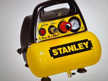 Stanley D 200 compressore 6 lt 1,5hp, pressione Max 8 bar/116Ps Kit 6 pezzi per gonfiaggio Tutto nuovo mai usato