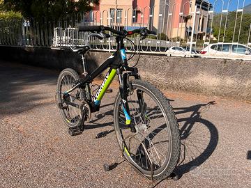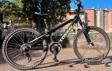 CONWAY MS 200, mountain bike con ruote da 24” per bambini (circa 8–12 anni). Telaio e componentistica (circa 10kg) pensati per renderla sicura e pedalabile anche per i piccoli (vedi specifiche sul sito Conway in cui è in vendita a 399€). copertoni sostituiti di recente, pronta all’uso, ottima per un regalo e per seguire i genitori anche su percorsi un po piu impegnativi