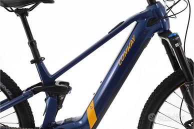 Bici ricondizionata | 1 anno di garanzia | Foto reali | Disponibilità immediata | Finanziamento da 238 € in 12 mesi | Spedizione in tutta Italia. · Prezzo listino: 5500 € · Scontata su zyclora.it: 2861 € Bicicletta Mountain Bike elettrica doppia sospensione - Telaio in Alluminio - Taglia S - Batteria: - Motore: Bosch Performance Line CX - 7310 chilometri - Dimensioni della ruota: 29" - Deragliatore: SRAM SX - 12 Velocità velocità - Cassetta: 11-50-T - Leve del cambio: - Pedivelle: Conway - Corone: 36-T - Freni: Tektro - Ruote: Black Jack 35 - Forcella: Fox 36 Rhythm - 150mm di escursione - Ammortizzatore: Fox Float Performance - Materiale della potenza: Alluminio - Manubrio: - Reggisella: Alluminio Telescopica Maggiori informazioni sulla bici La Conway Xyron S 3.9 è una bicicletta elettrica da montagna a doppia sospensione che combina prestazioni e comfort su terreni difficili. Dotata di componenti SRAM SX, offre una risposta rapida e precisa ad ogni pedalata. Il suo design robusto e moderno, insieme all'assistenza elettrica, permette di percorrere lunghe distanze con facilità e controllo. Ideale per gli avventurieri che cercano un'esperienza versatile e affidabile su sentieri e strade rurali. La Conway Xyron S 3.9 si distingue per la sua durabilità, tecnologia avanzata e stile sportivo, rendendola la scelta perfetta per gli appassionati di mountain bike. Condizione meccanica Esaminamo ogni bici in dettaglio · Controlliamo l'integrità strutturale del telaio e delle ruote. · Controlliamo il funzionamento delle sospensioni, della trasmissione e dei freni. · Esaminiamo tutti gli articoli soggetti a usura e modifichiamo quelli necessari per garantire il corretto funzionamento. · Analizziamo il funzionamento del motore, della batteria e del display, nel caso delle bici elettriche. · Effettuiamo la lubrificazione completa e il serraggio di tutte le viti della bici.