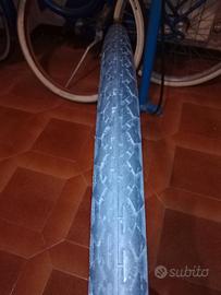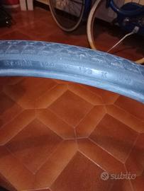 Vendo copertone originale d'epoca Pirelli,(no STELLA)misure 37-622(28x1⅝-1⅜)adatto al completamento di restauri per biciclette di quegli anni,presenta qualche screpolatura sui lati,e qualche visibile sfilacciamento sul tallone dove appoggia il cerchio,si consiglia un uso statico dello pneumatico perché duri nel tempo una volta completato il restauro,la gomma è ancora bella morbida e flessibile nonostante l'età,ed il battistrada centrale praticamente nuovo.