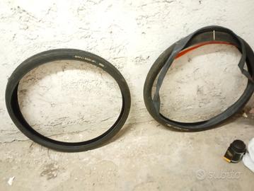 copertoni lisci da strada 29x1,75 Mountain bike o gravel completi di fascia antiforatura e camera d'aria hanno fatto 200 km praticamente nuovi vendo perché ho montato le tubeless