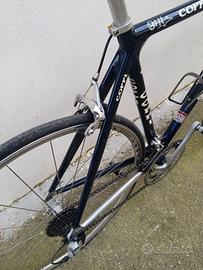 Bici da corsa del 1997 in alluminio molto particolare, infatti come si puö notare dalle foto ha le congiunzioni dei tubi "a fazzoletto" per irrigidire il telaio ulteriormente. E' equipaggiata con gruppo completo Shimano Sora 2x8 velocità perfettamente funzionante ed in ottime condizioni estetiche. Il telaio presenta qualche graffio. Sul tubo orizzontale sono stati effettuati dei ritocchi in corrispondenza della scritta del modello, ma niente botte o crepe. TELAIO SANO. Sella Flite Max. La ruota anteriore è una Fir Aria. Gomme Michelin da poco montate. BICI PRONTA PER L'UTILIZZO. Misura 52x52 c/c. Posso fornire l'attacco e manubrio dell'epoca e la ruota anteriore Shimano WHR550 con mozzo da riparare. Rapporti 52/39 13-26.