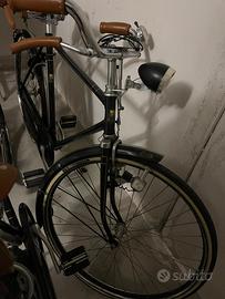 Bici per appassionati perfette in tutto! Quella da uomo monta portagiornale nel manubrio. Posso mandare foto dettagliate… decorazioni in vernice dorata su parafanghi e telaio fatte a mano! Freni a bacchetta con protezione cerchio in vernice. Vendo anche separatamente a 400l’una (regalata) 500 se prese in coppia. Svendo causa totale inutilizzo e necessità urgente di liberare il box…