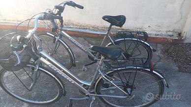 coppia bici con telaio in alluminio lucido ben tenute. In particolare quella da donna è dotata di cestino e portapacchi mentre quella da uomo ha la sella imbottita in gel e la pompa per gonfiare i pneumatici. Entrambe sono dotate di illuminazione davanti e dietro. In particolare quella da uomo ha una ulteriore illuminazione a batterie davanti. Non spedisco e sono visibili a Salgareda anche per essere provate.