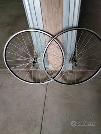Coppia di cerchi da 28 /700 8 velocità per freni V-BRAKE con sgancio rapido. Il cerchio posteriore è storto