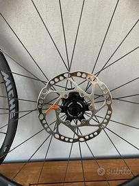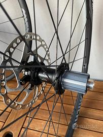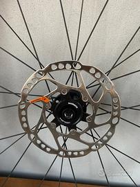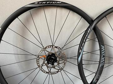 In alluminio con mozzi Miche con sistema center lock, colore graffite. Le ruote e dischi sono nuove hanno percorso 100 km.