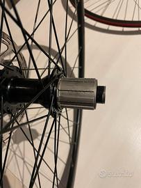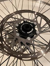 Vendo 2 cerchi con disco freno e corpetto incluso freno anteriore 160mm, freno posteriore 140mm corpetto Shimano 11/12 velocità. Pari al nuovo utilizzati per 3 uscite