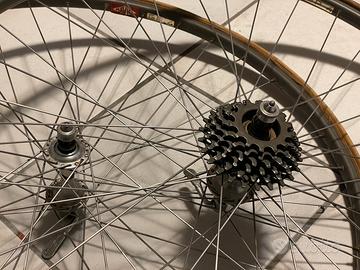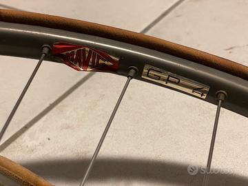 Cerchioni per bici da corsa vintage Mai usati Per davanti e dietro Tenuti bene Con raggi e cambio Diametro 62 cm circa Marca mavic gp4 Mai usati