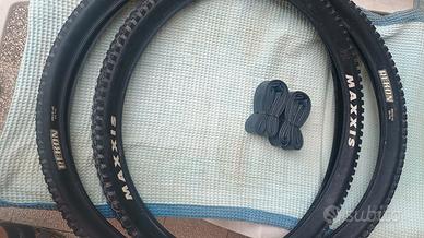 coppia di copertoni MTB Maxxis Rekon da 29 x 2.40 65 psi. adatti a terreni misti con tacchetti aggressivi abbinati a due camere d' aria antiforo vulcanizzate