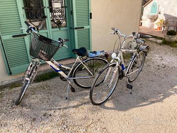 Vendo coppia di bici con telaio in alluminio , modello lei /lui, equipaggiate di cambio , luci , portapacchi e cestino ( nella versione Lady ), cavalletto . Praticamente sempre tenute in garage . Segnalo la necessità di cambio delle camere d'aria nella bicicletta Lui , l'altra invece è perfetta . 28 pollici (28"). VENDO PREFERIBILMENTE IN COPPIA ( valuto vendita singola ). PREZZO NON TRATTABILE . SOLO RITIRO