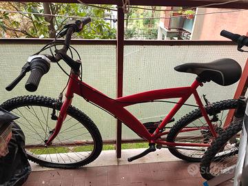 PER PEZZI DI RICAMBIO O ALTRO. Alla bicicletta rossa mancano i pedali per motivo tecnici (il braccio del pedale è usurato e il pedale stesso non regge) Alla bicicletta grigia invece sono rotti per via del deterioramento del tempo.