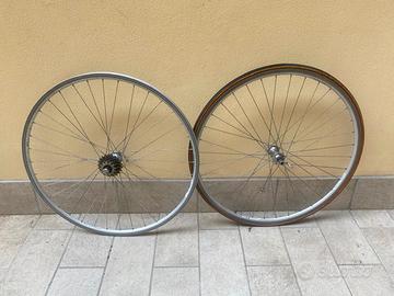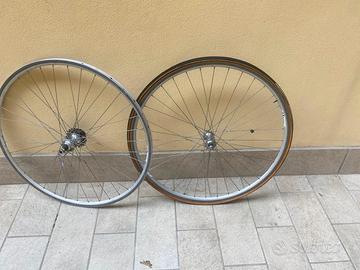 vendo coppia di cerchi da 28 per bici da corsa eroica con mozzi zeus anni 70 cerchi tubolari un tubolare buono
