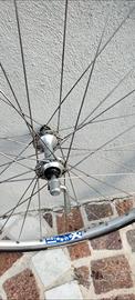 Coppia di ruote , anteriore e posteriore da 28 pollici in alluminio marca Ambrosio con sganci rapidI Miche, tutto in ottime condizioni per passaggio a carbonio. Lascio anche copertoni camere e cassetta pignoni